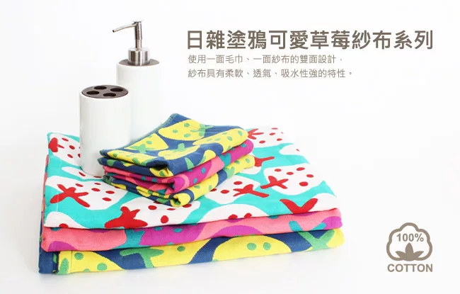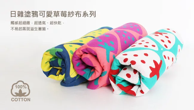 博客來精選推薦Lovel日雜塗鴉可愛草莓紗布方巾(共3色)粉色