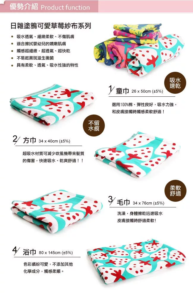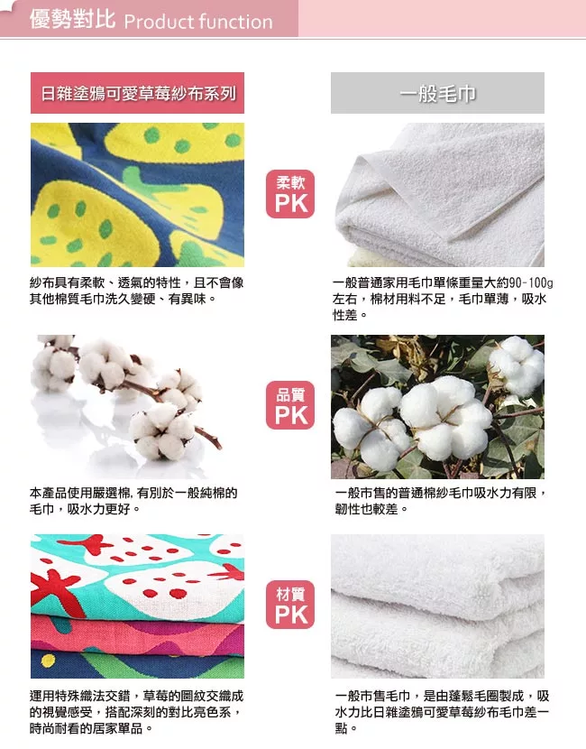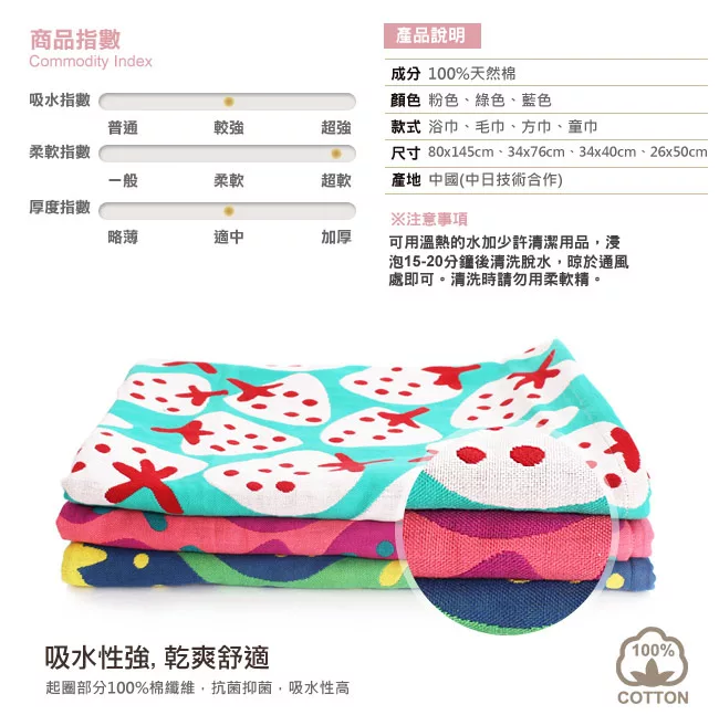 吸水透氣、細緻柔軟、不傷肌膚 |